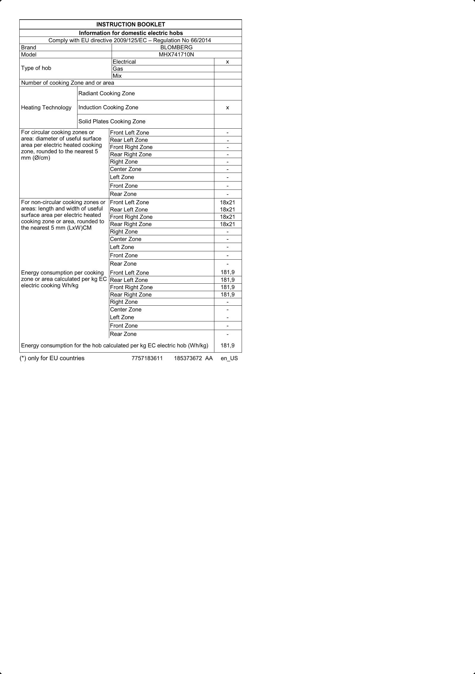 MHX741710N: Indbygget kogeplade (Induktion, 80)