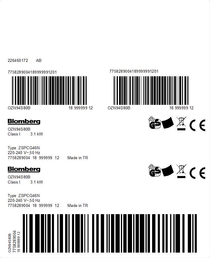 OZN94S80B: Indbygningsovn (Built-in Oven 80 L)