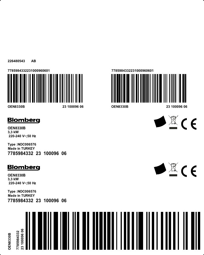 OEN8330B: Indbygningsovn (Built-in Oven 72 L)