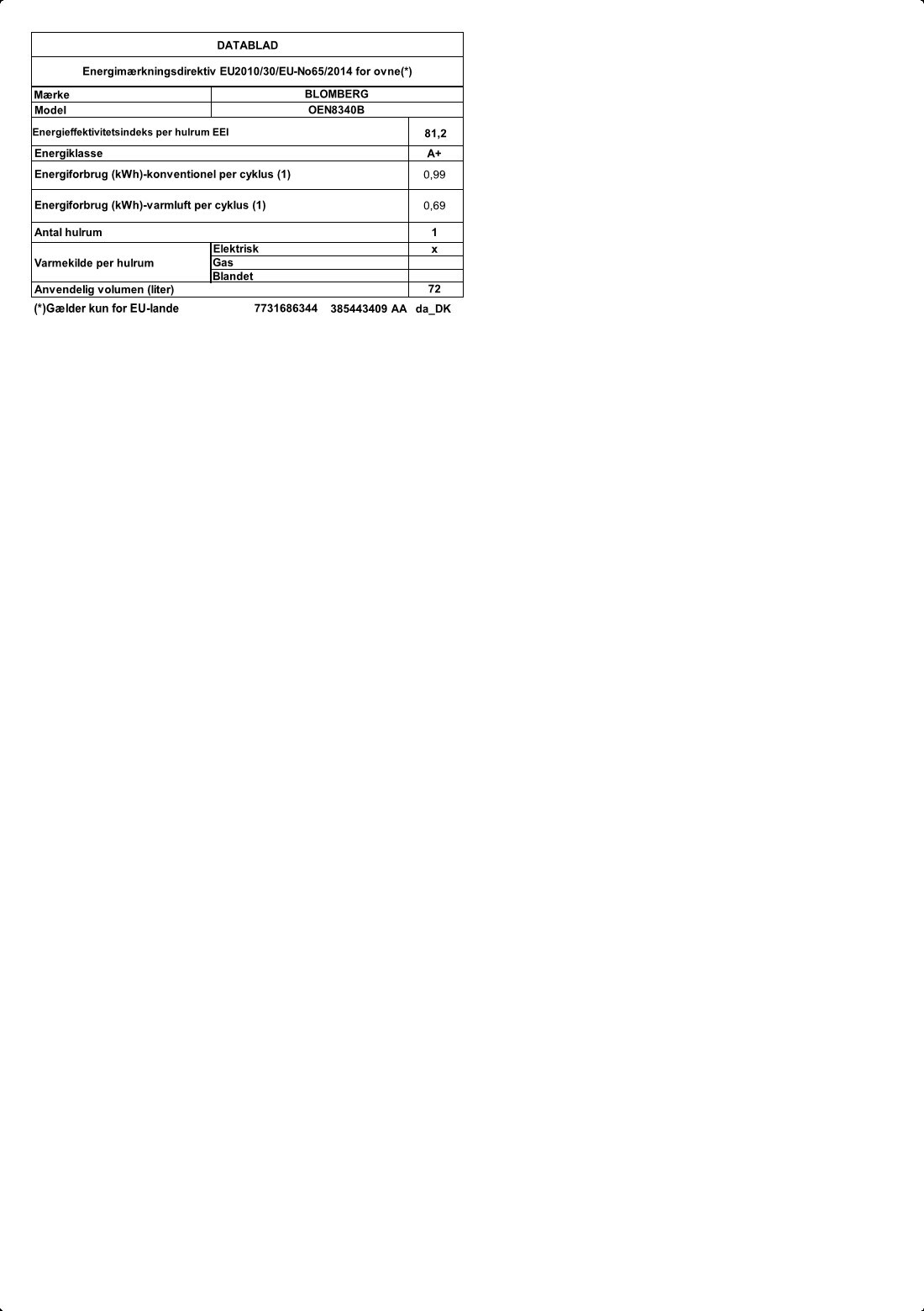 OEN8340B: Indbygningsovn (Built-in Oven 72 L)