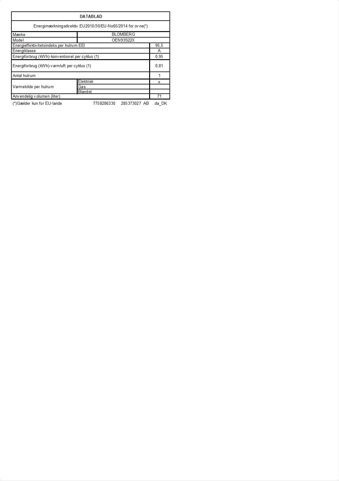 OEN93S22X: Indbygningsovn (Built-in Oven 71 L)