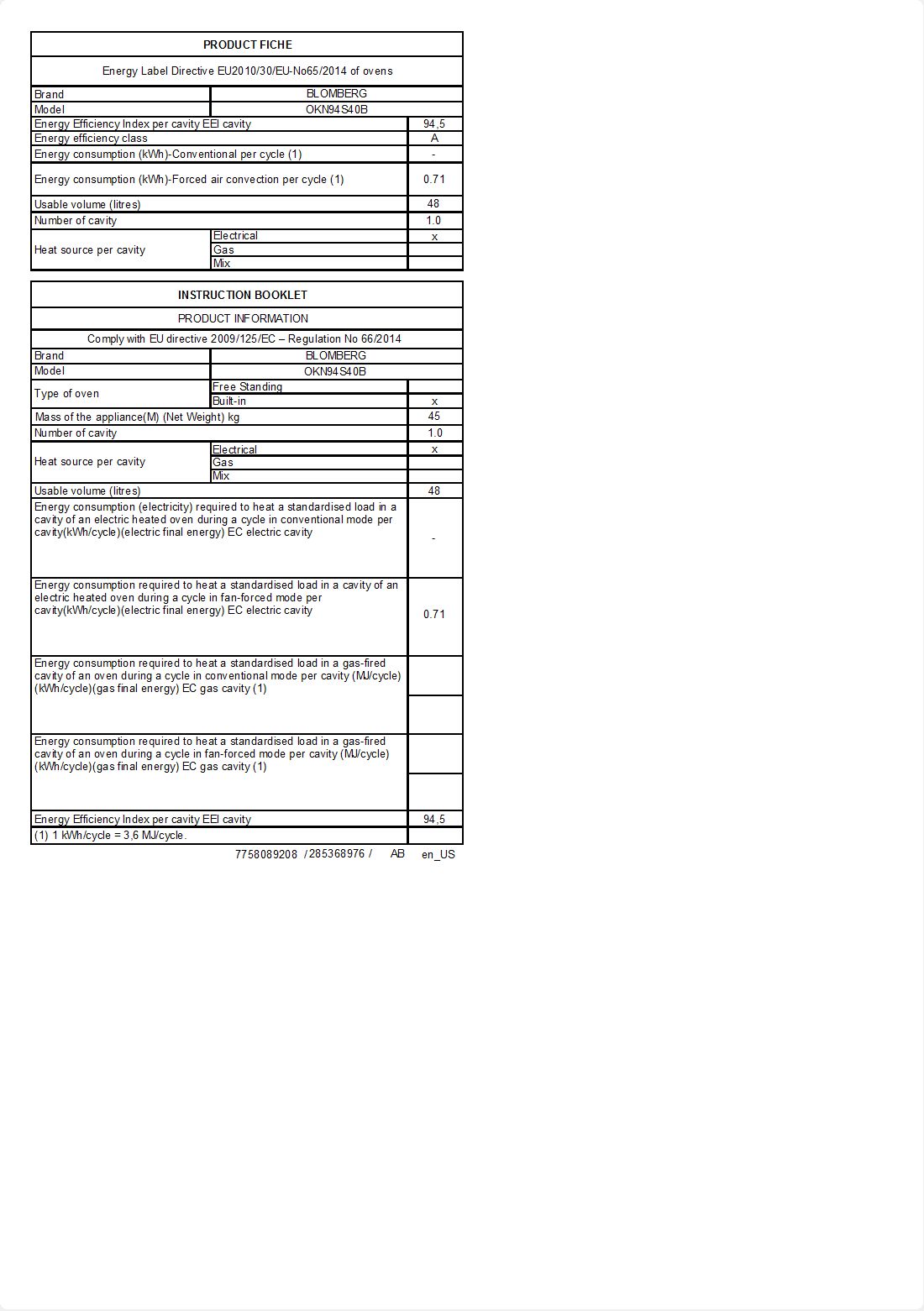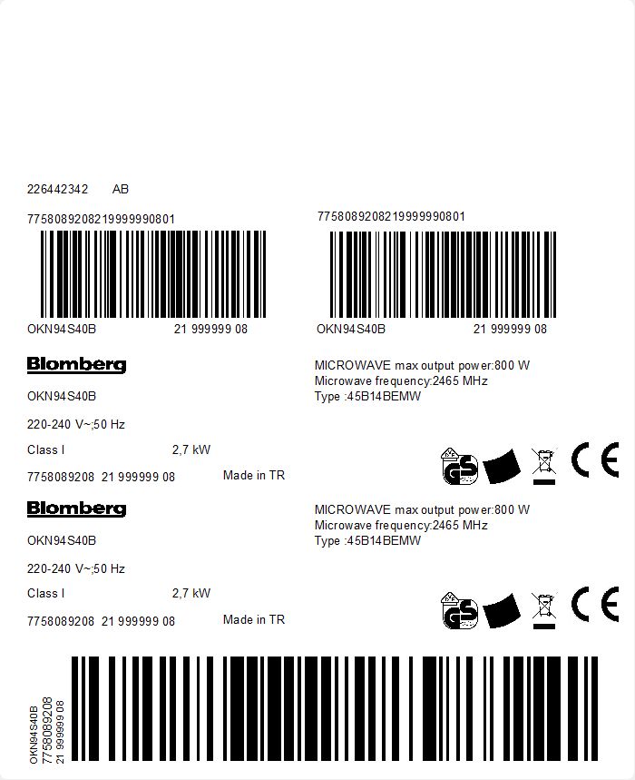 OKN94S40B: Indbygningsovn (Built-in Compact Oven 48 L)