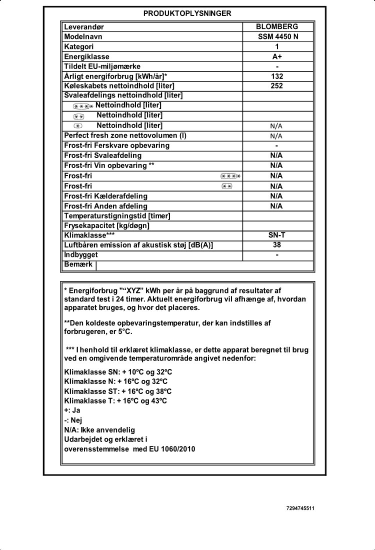 SSM 4450 N: Køleskab (Single Door - no freezer, 252 L)