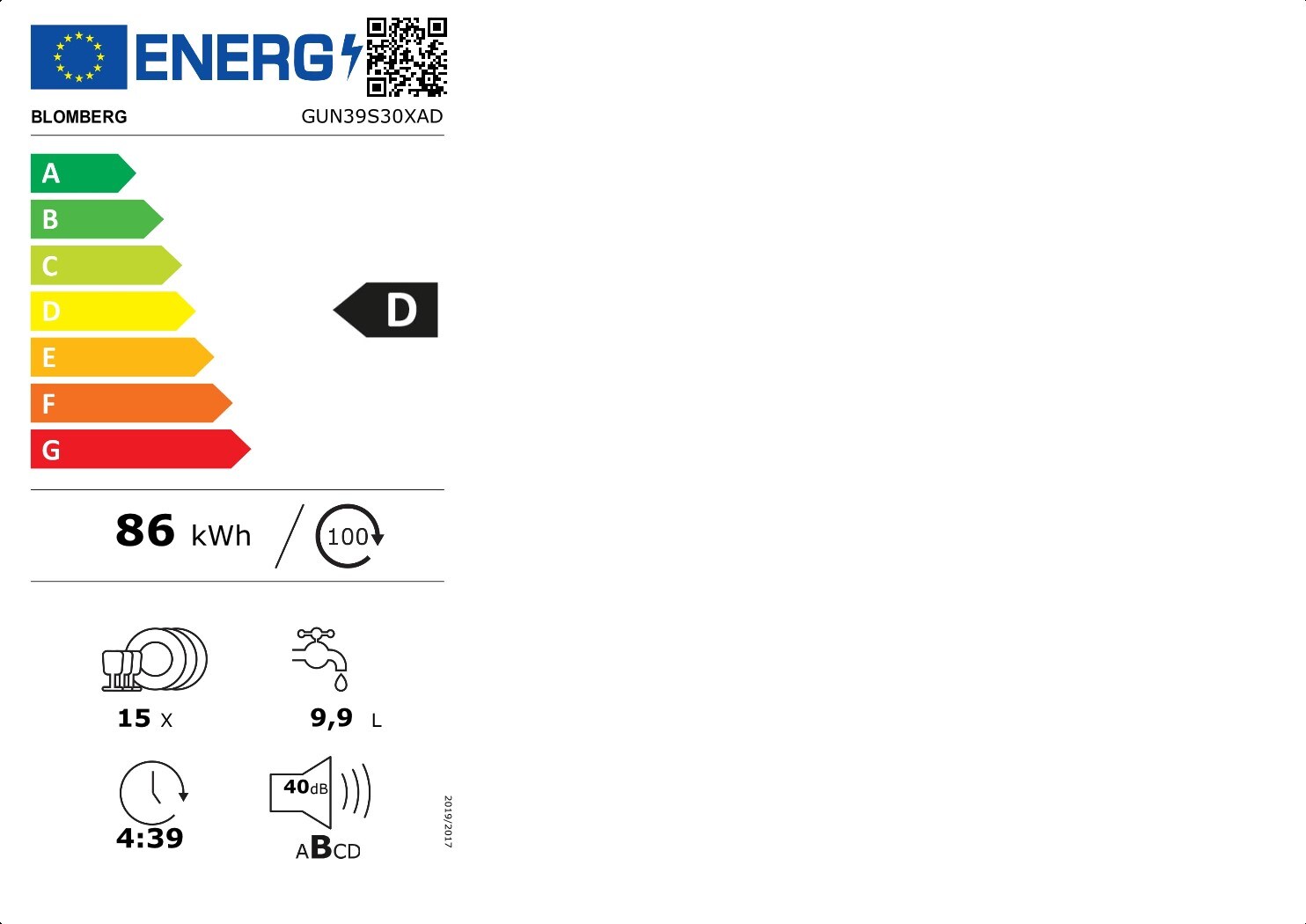 GUN39S30XAD: Opvaskemaskine (15 kuverter, Full Size)