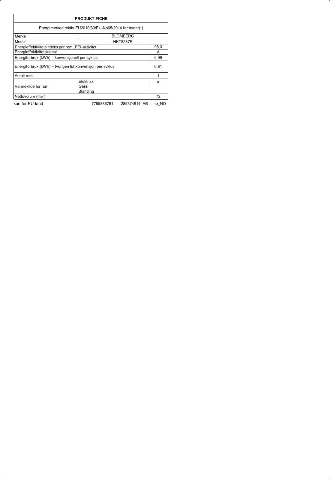 HKT8237P: Frittstående komfyr (Multifunksjonell matlaging, 60 cm)