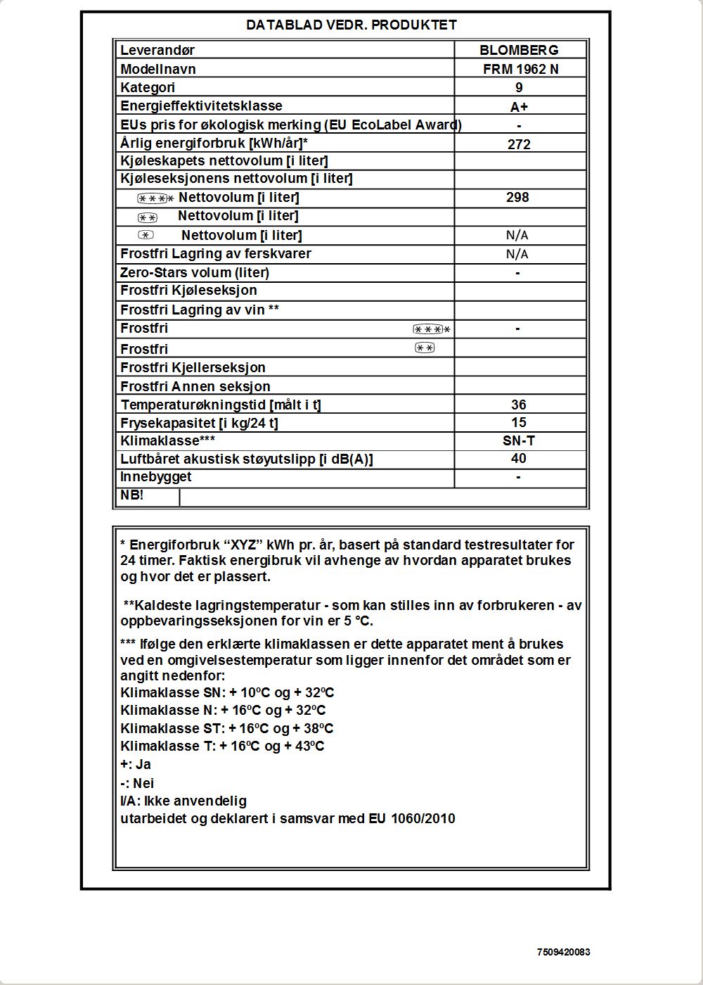 FRM 1962 N: Fryser (Fryser boks, 298 L)