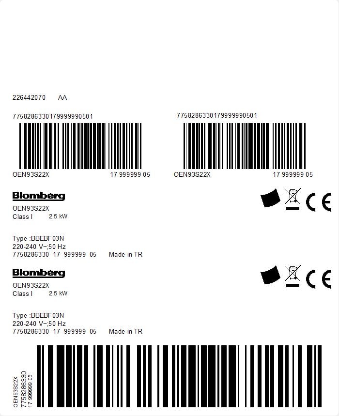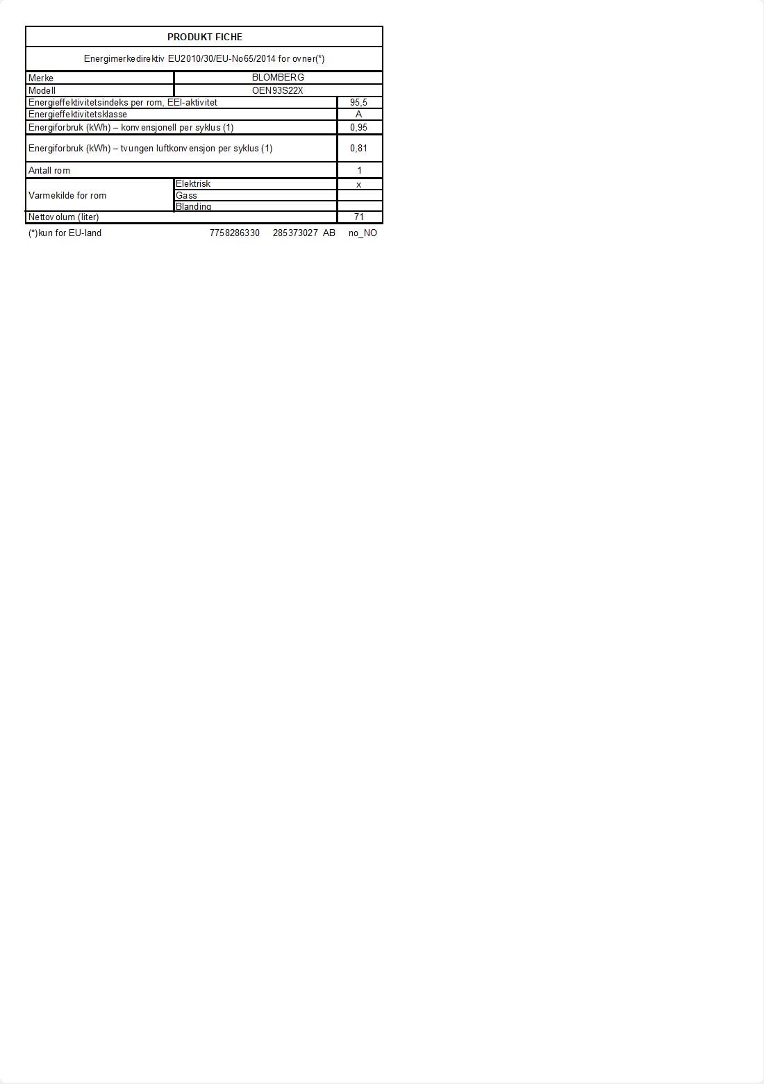 OEN93S22X: Innebygd ovn (Built-in Oven 71 L)