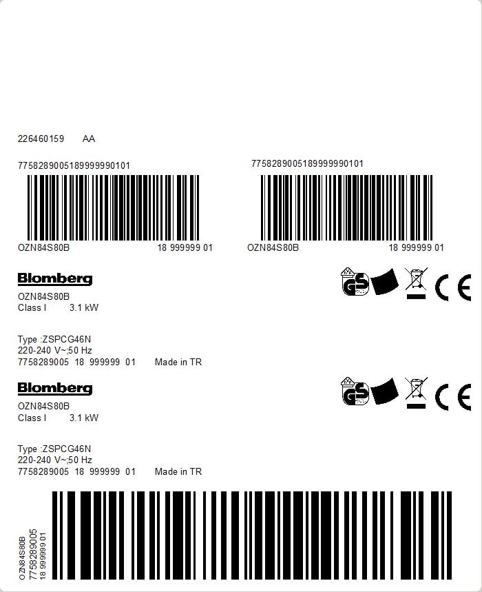 OZN84S80B: Innebygd ovn (Built-in Oven 80 L)