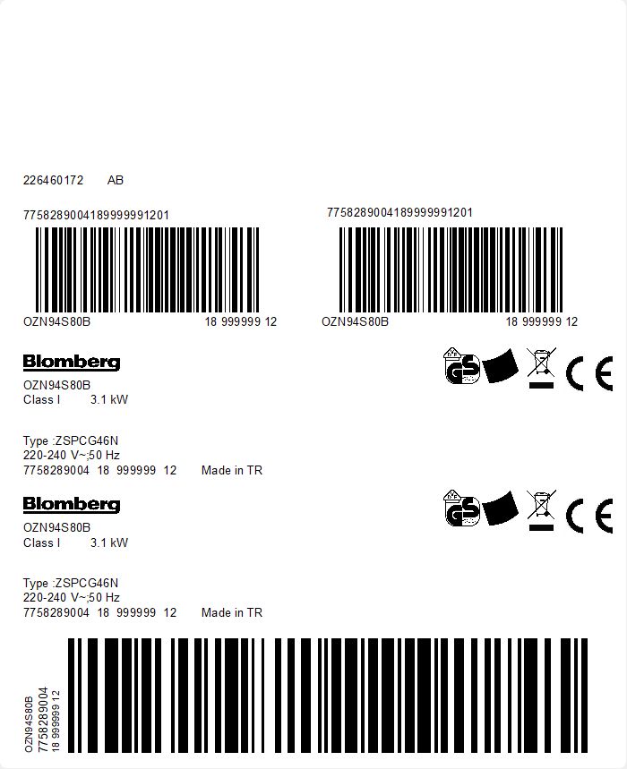 OZN94S80B: Innebygd ovn (Built-in Oven 80 L)