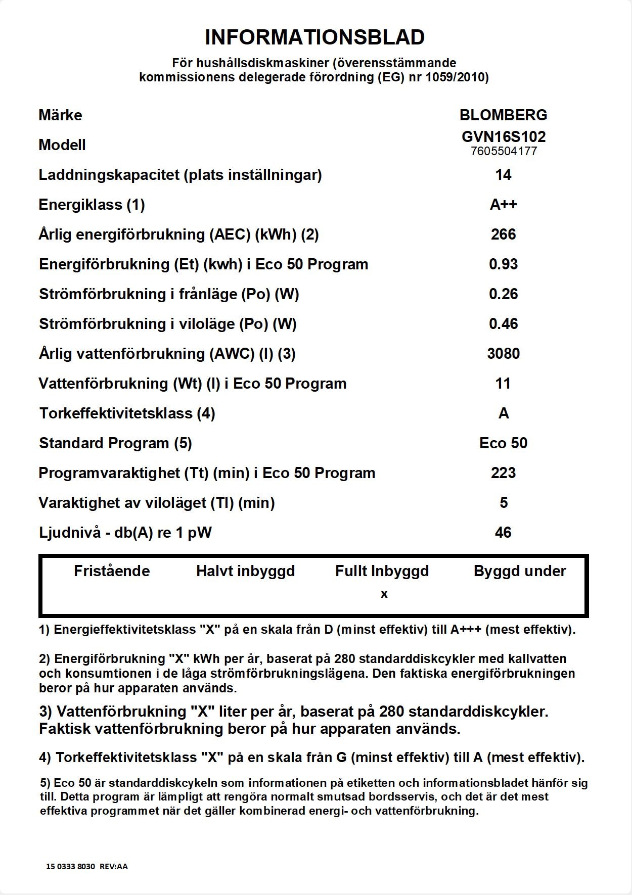 GVN16S102: Diskmaskin (14 platsinställningar, Standard størrelse)
