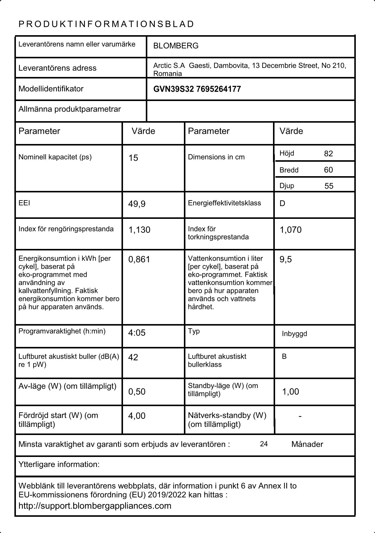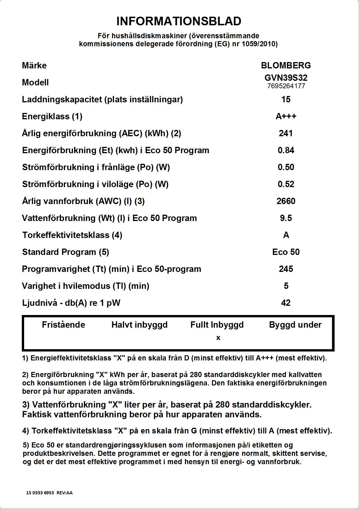 GVN39S32: Diskmaskin (15 platsinställningar, Standard størrelse)