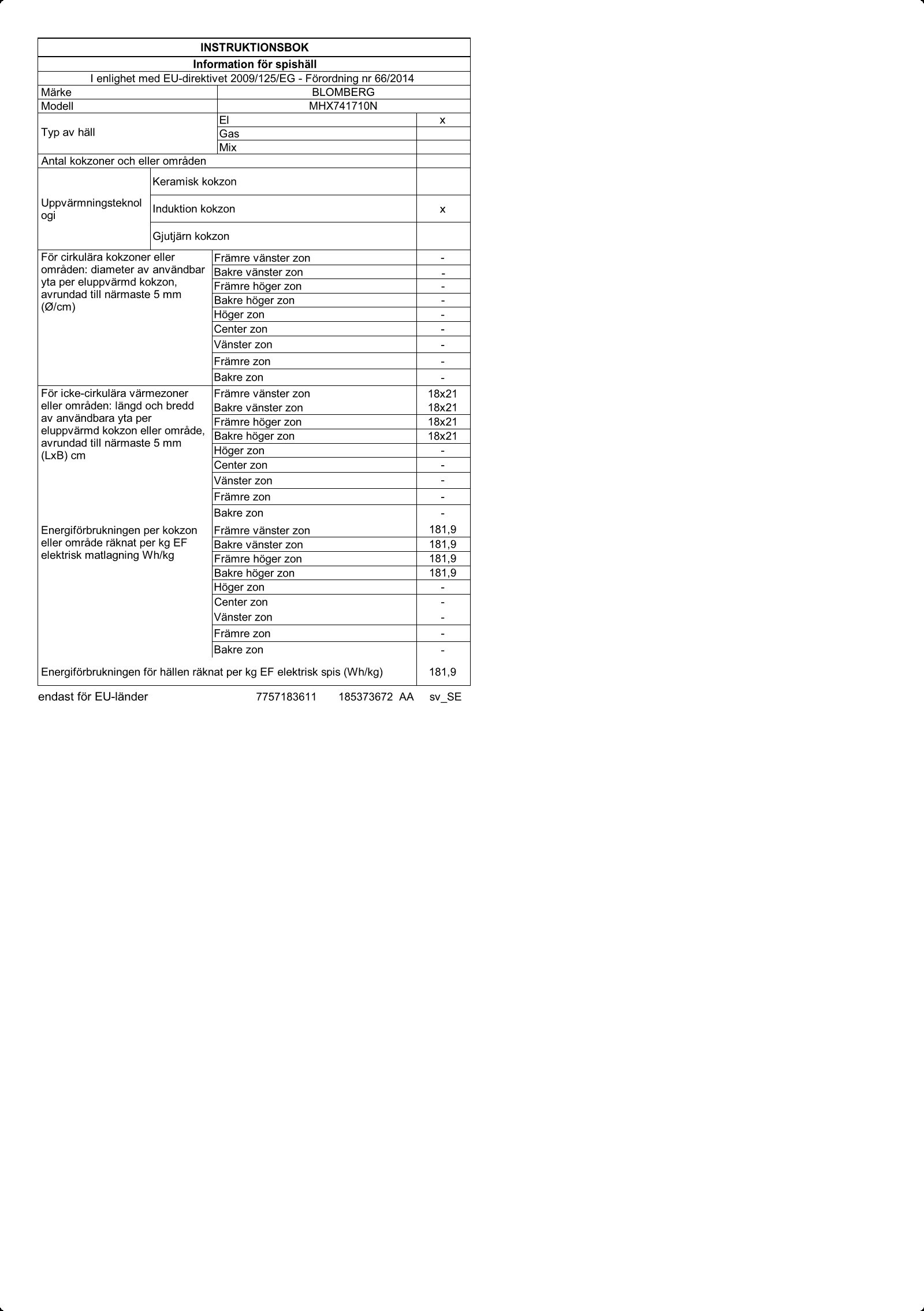 MHX741710N: Inbyggd spishäll (Induksjon, 80)