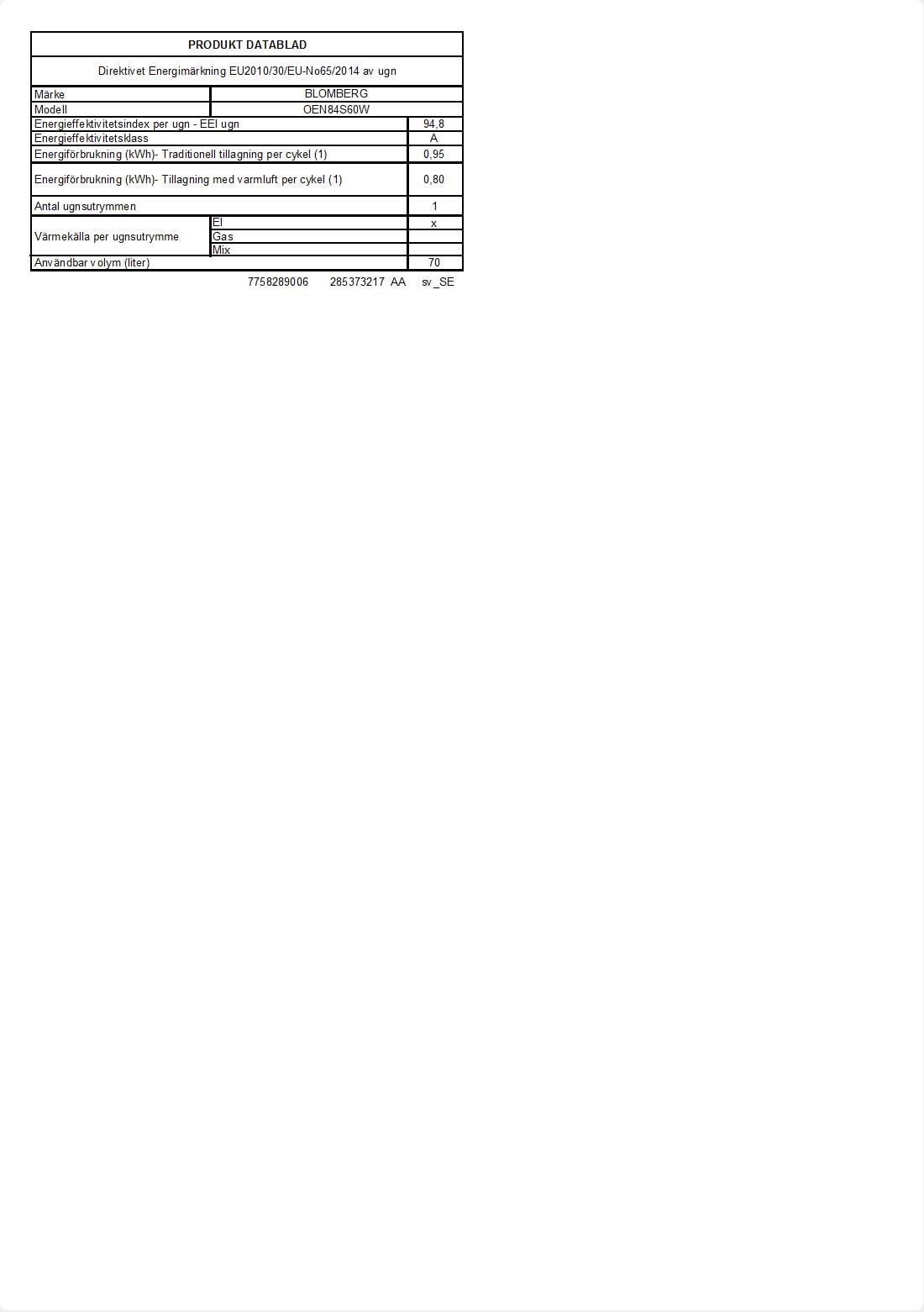 OEN84S60W: Inbyggd ugn (Built-in Oven 70 L)