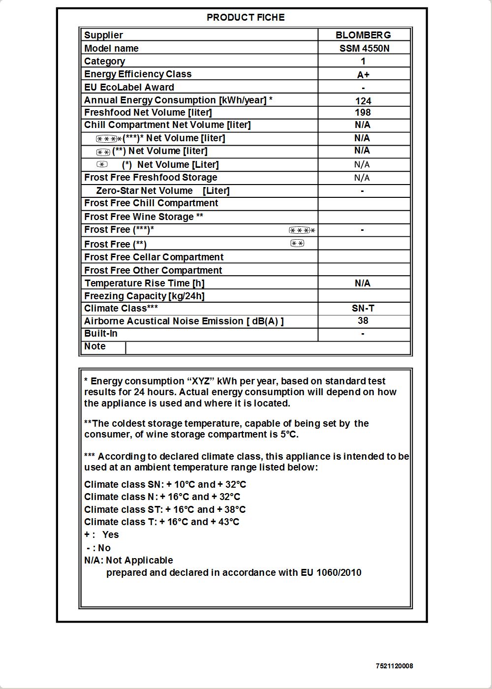 SSM 4550N: Kyl (Single Door - no freezer, 198 L)