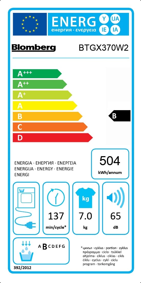 BTGX370W2: Torktumlare (Kondensator, 7 kg)